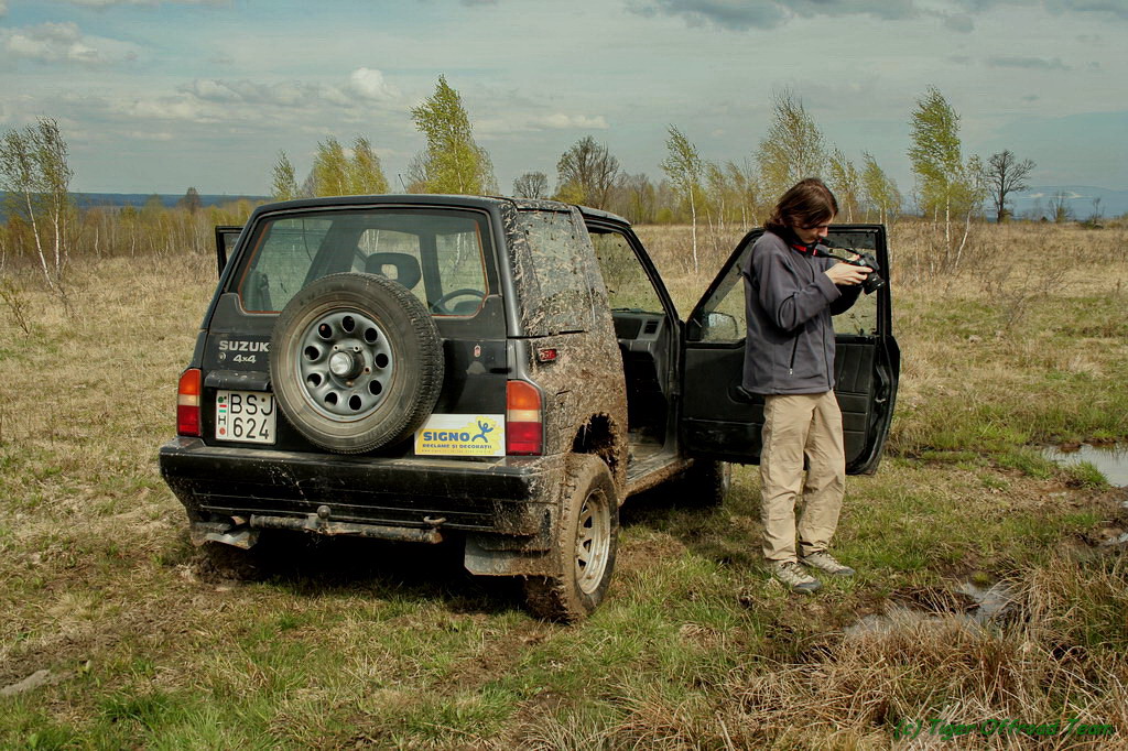 Egy jellemzö kép a vasárnapi túráról: fennsík, út sehol, pocsolyák, és Eduárd ahelyett, hogy navigálna, fényképez :)